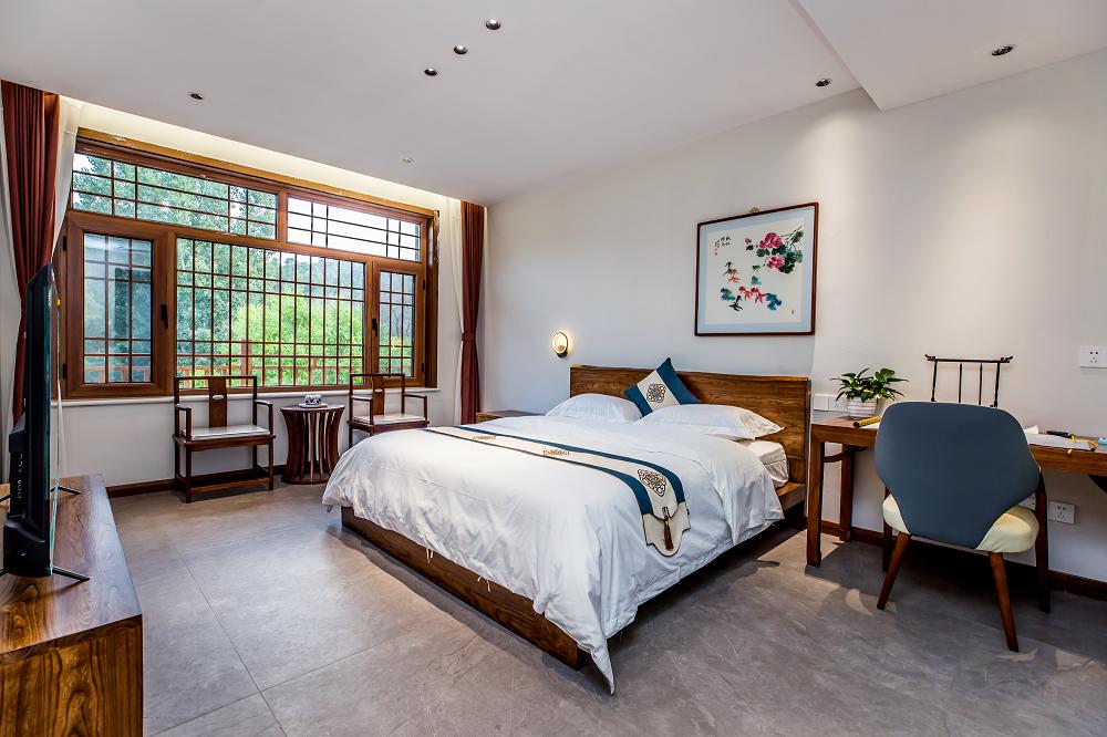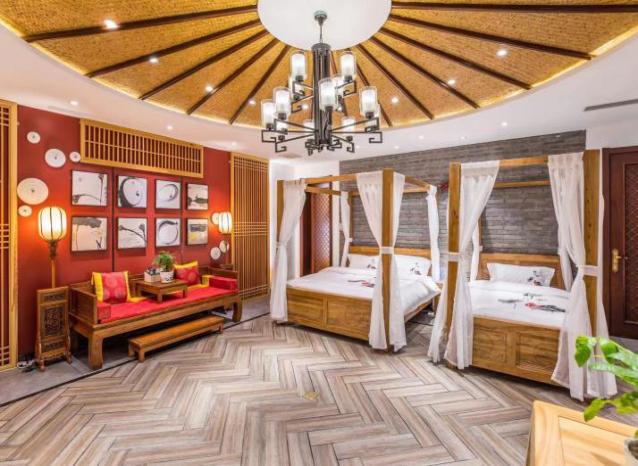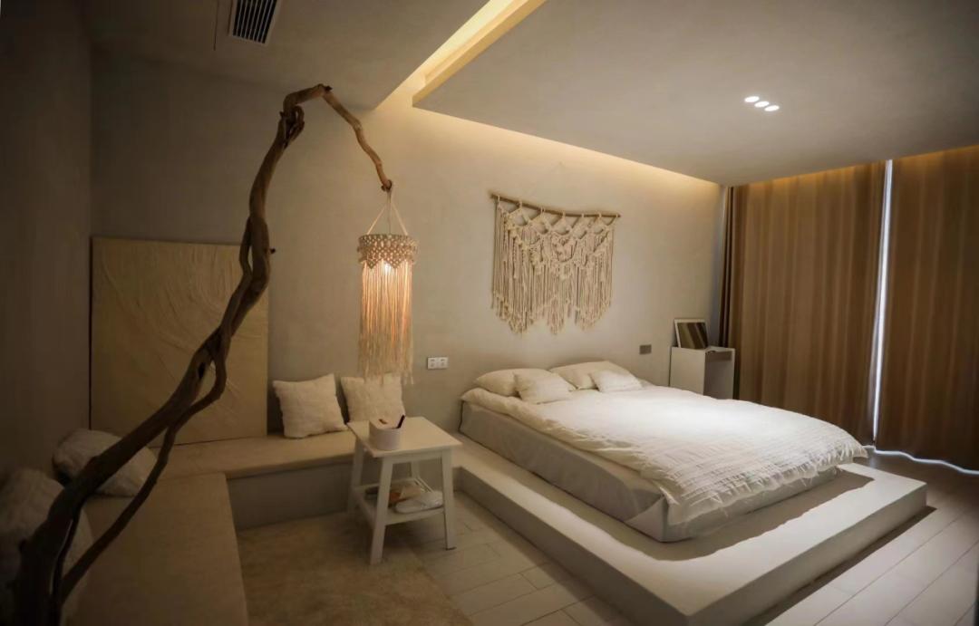 而已小院民宿坐落于双峰寺镇双峰寺村,占地1.6亩,三排房子,每排房子120平,建筑面积共360平。小院分为前、中、后共三个院子,总体布局和外观尽显优雅安静。前排房屋3间,总体以侘寂风为主,简单纯朴,室内皆以水泥艺术漆打底,配有原木色调的家具和个性的装饰品,给人回归纯朴自然的清新感受;中间排房屋4间,共分禅意房和儿童房两种房型,两边房间内设榻榻米,配有朦朦山水壁画,简单的禅意花瓶,空灵鼓等;另有两间为儿童房,无论是宽大耐用的乐高墙,还是随处可见的毛绒玩具,亦或是伸手可触的儿童绘本,在这里足可以放手让孩子去玩耍;后排是共享区,主要以休闲娱乐餐饮为主,房屋6间,麻将室、布草间、卫生间、消毒间、大餐厅、CD室,主要的风格以美式复古风为主,共享区的设计主要给来往客人足够的休息娱乐的空间,无论是想痛快的玩上几把,还是想放空自己听听年代感的CD,亦或是来两杯咖啡或小酒,这里绝对是个不错的休息地。浅草别院民宿