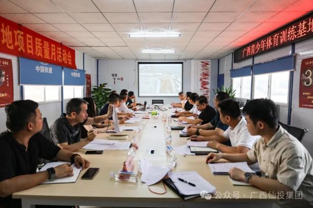 总投资近5亿元的广西青训基地建设得怎样了?什么时候可以交付使用?是目前武宣社会各界比较关心和关注的在建重大项目。为保质保量推进项目建设,并达到按时交付使用,仙投集团作为代建业主,每周都组织召开广西青少年体育训练基地项目推进会,与建设、施工、设计、监理、运营各参建单位就项目进度和遇到的难点、堵点问题进行会商。