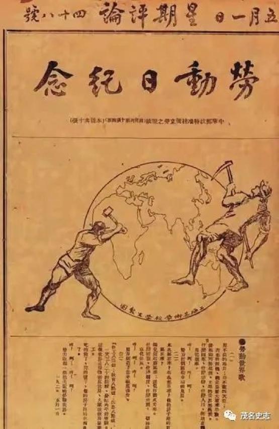 劳动节纪念号1918年,一些知识分子在上海、苏州、杭州、汉口等地向工人散发介绍“五一”节内容的传单。1920年,上海、北京、广州、唐山都举行了纪念五一劳动节的活动。李大钊专门在《新青年》上刊出“劳动节纪念号”,并发表了孙中山“天下为公”的题词、蔡元培“劳工神圣”的题词以及李大钊的《“五一”运动史》、陈独秀的《上海厚生纱厂湖南女工问题》等文章。李大钊的《“五一”运动史》,介绍“五一”节的来历和美法等国工人纪念“五一”的活动,号召中国工人把这年的“五一”作为觉醒的日期。陈独秀的《上海厚生纱厂湖南女工问题》一文,揭露资本家剥削工人剩余价值的真相。同时,《新青年》还登载了《旅法华工工会简章》及唐山、山西、长江沿岸等地的劳动状况调查。5月1日,李大钊领导了以北京大学为中心的纪念活动,500多名校工和学生参加,李大钊发表演说,宣传8小时工作制;邓中夏等在北京组织进步青年外出宣传,散发《五月一日劳工宣言》并发表讲演。