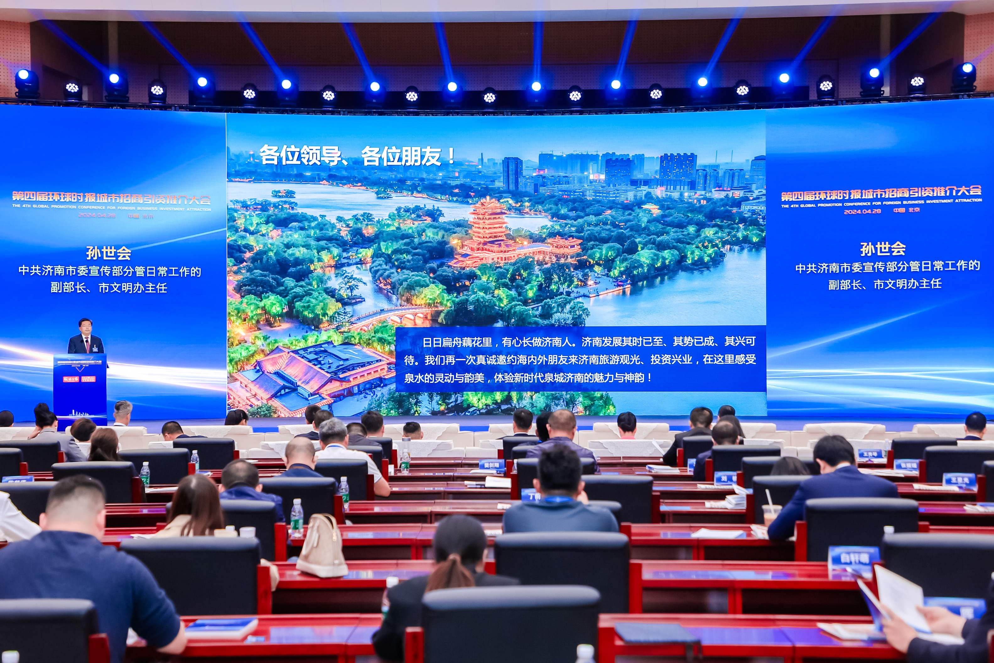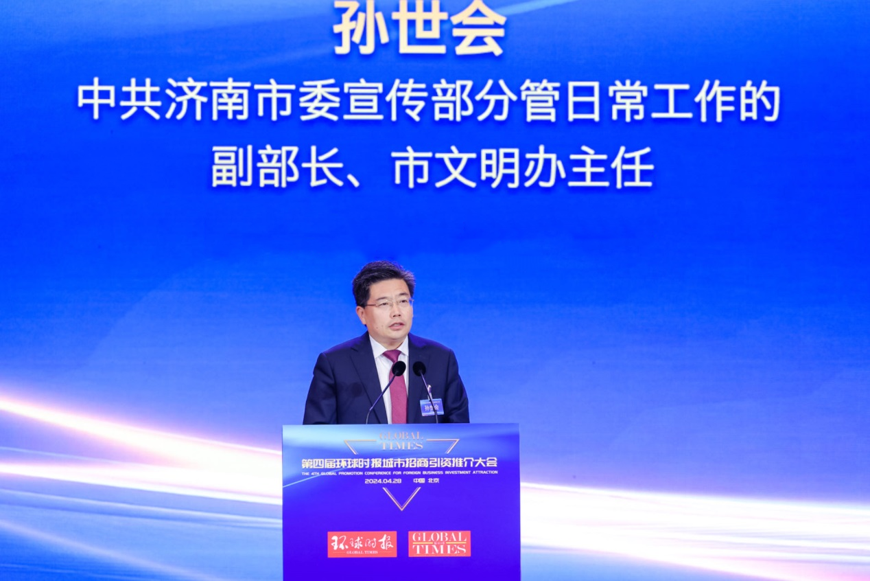 4月28日,第四届环球城市招商引资推介大会在北京举办。中共济南市委宣传部分管日常工作的副部长、市文明办主任孙世会受邀出席大会,并在大会作了题为《“泉”在济南 共启新程》的主旨发言。