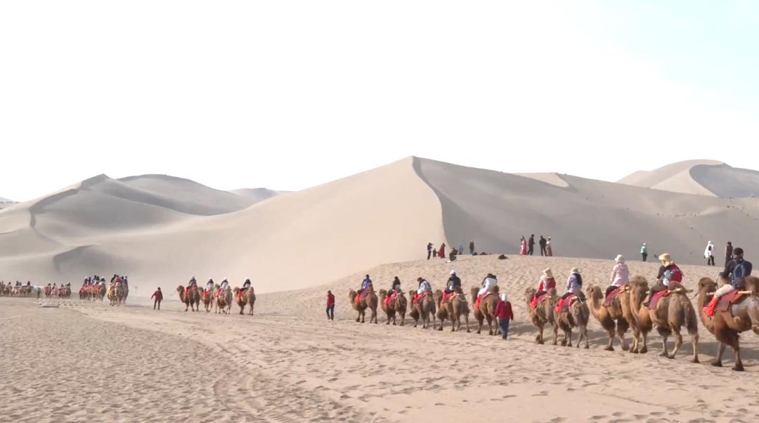 “五一”小长假首日,敦煌市鸣沙山月牙泉景区游人如织,迎来了旅游“小高峰”。