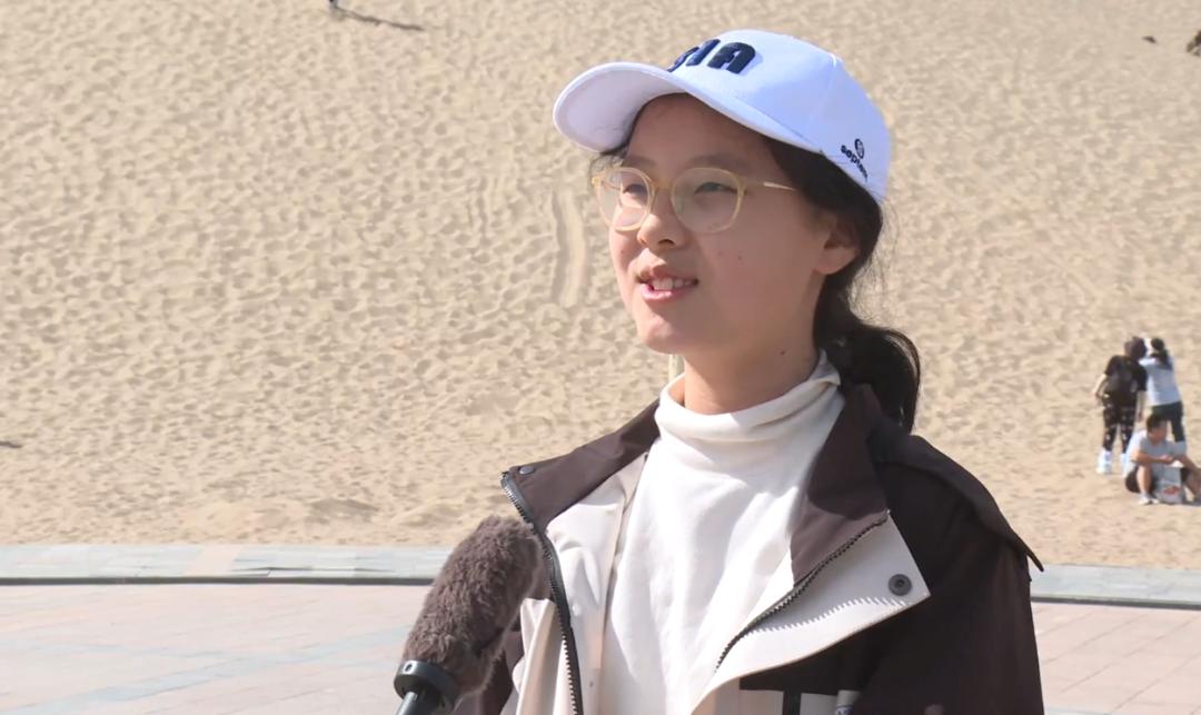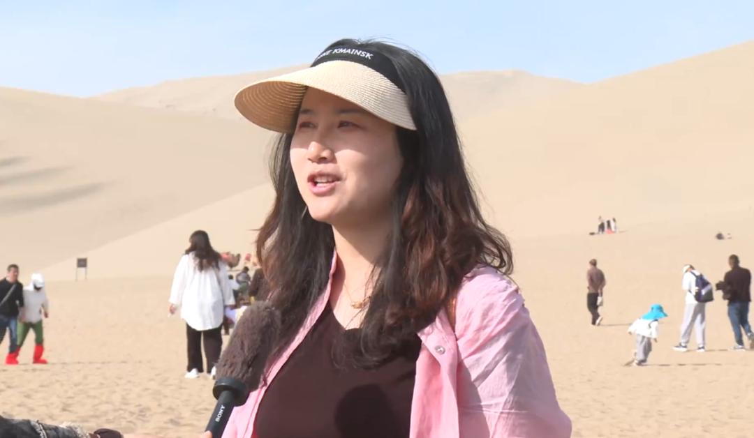 江苏游客邢宝茜说:“第一次来西北,真正感受到了塞外风光,刚刚骑了骆驼,也去爬山了,真正感受到了沙海是什么样子的。”