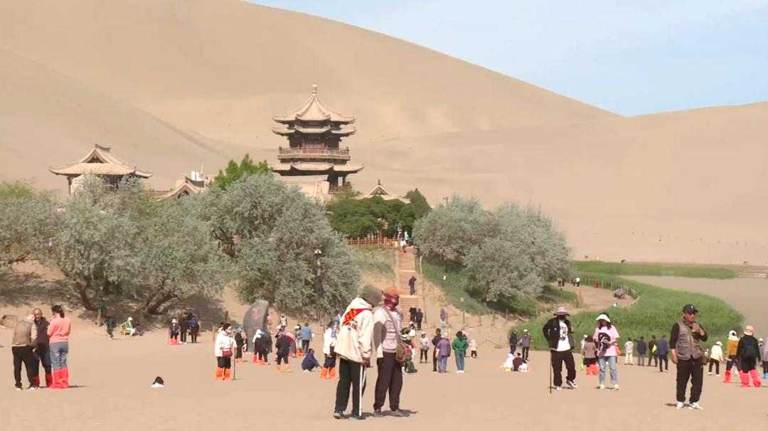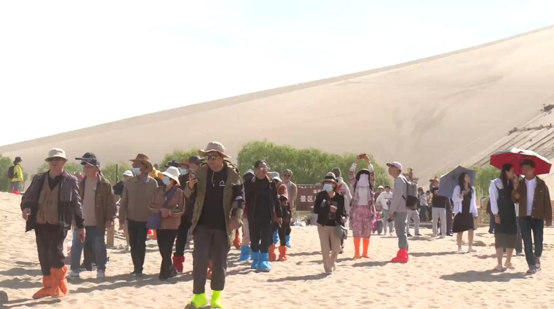 敦煌发布向上滑动看下一个原标题:《“五一”假期首日 敦煌市鸣沙山月牙泉景区游人如织》