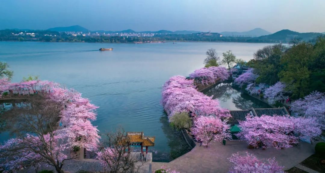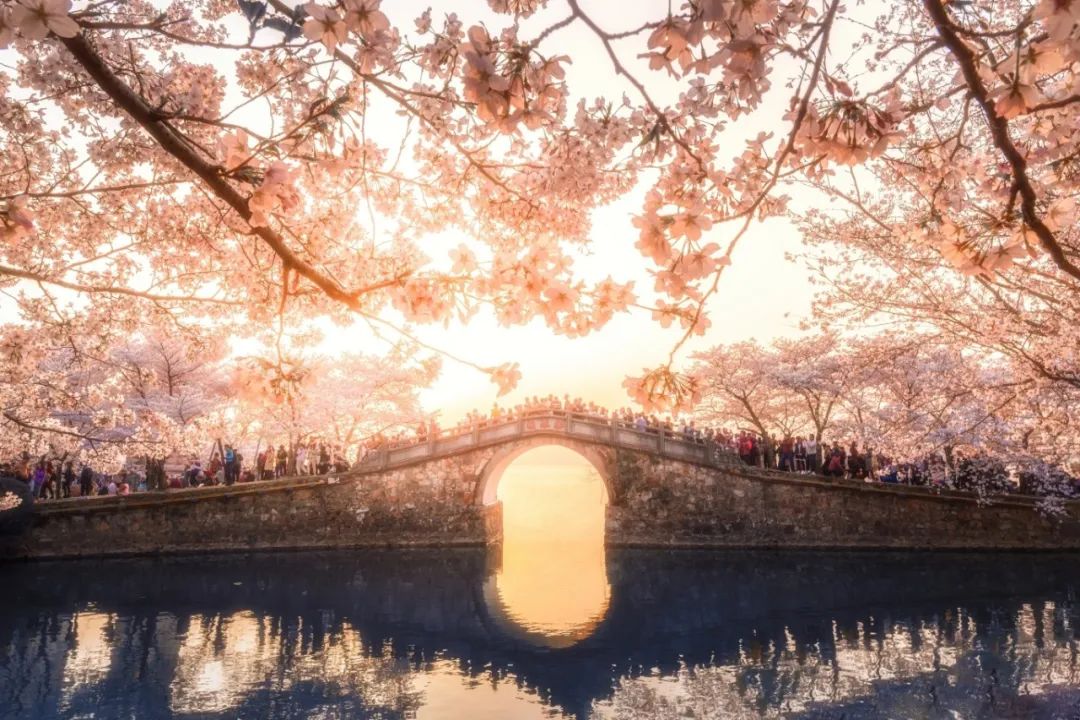 古人有诗云:“江南无所有,聊赠一枝春。”这句诗道尽了江南春天的独特魅力,那一枝春便足以让人心醉神迷,粉色的云海与天边的云彩在湖面上遥相呼应,惊艳了整个湖畔的春天。每年三四月份,无锡鼋头渚还会举办一年一度的樱花节,夜间赏樱更是一大特色。樱花争相绽放,如同点点粉墨,洒在碧波荡漾的太湖之畔,江南如此好,叫人怎能不忆江南?