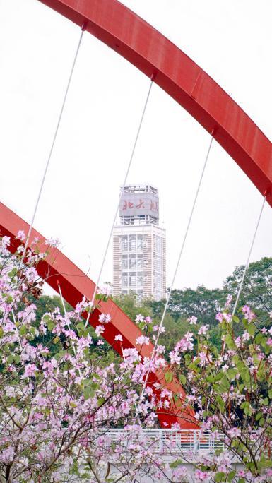 深研院五四塔与粉花羊蹄甲(摄影吴欣妮)