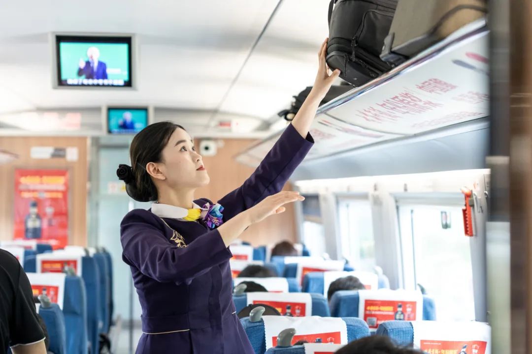 合肥客运段列车乘务员整理行李架上物品 (吴臻皓 摄)合肥南、金华、义乌、徐州东、连云港、淮南南、阜阳西等站在进站口、电梯口、站台、天桥、地下道等重点场所增加工作人员和志愿者,为旅客提供问询解答、方位指引、重点帮扶等服务,做好进出站引导、上下车疏散等工作,避免旅客集聚堵塞通道。上海客运段、杭州客运段、南京客运段、合肥客运段加强文明乘车宣传和车厢巡视,列车上配备小药箱、针线包、手机充电设备等,供有需要的旅客使用;对于“一老一幼”旅客群体,推行“适老化”服务、“哄娃百宝箱”等,在热门方向列车上配备儿童绘本、书籍和玩具,为长途儿童旅客提供舒适的乘车环境。上海工务段、南京动车段、杭州供电段、合肥车辆段、徐州电务段等单位加强假期设备巡视检查,提前有针对性地做好工电供等设备养护维修,精准掌握设备设施运行状况,确保以最好的运用状态投入到假期运输中。
