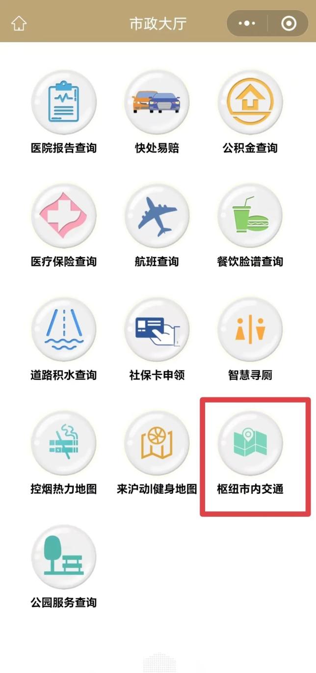 第二步:下滑页面,找到【枢纽市内交通】,然后点进去