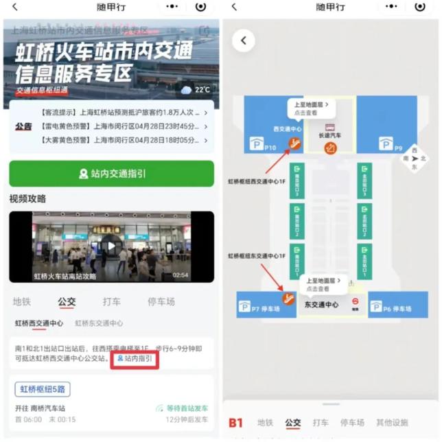 注意:如果是在虹桥火车站以外的其他站点到达,可按照小布开始介绍的方式选择站点,然后查看站内指引及所需交通信息即可。