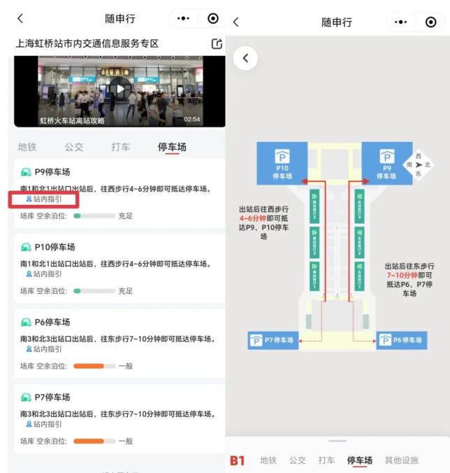 如果不清楚行走路线,可以点击站内指引,然后就能看到通往停车场的地图,按照地图行走即可。