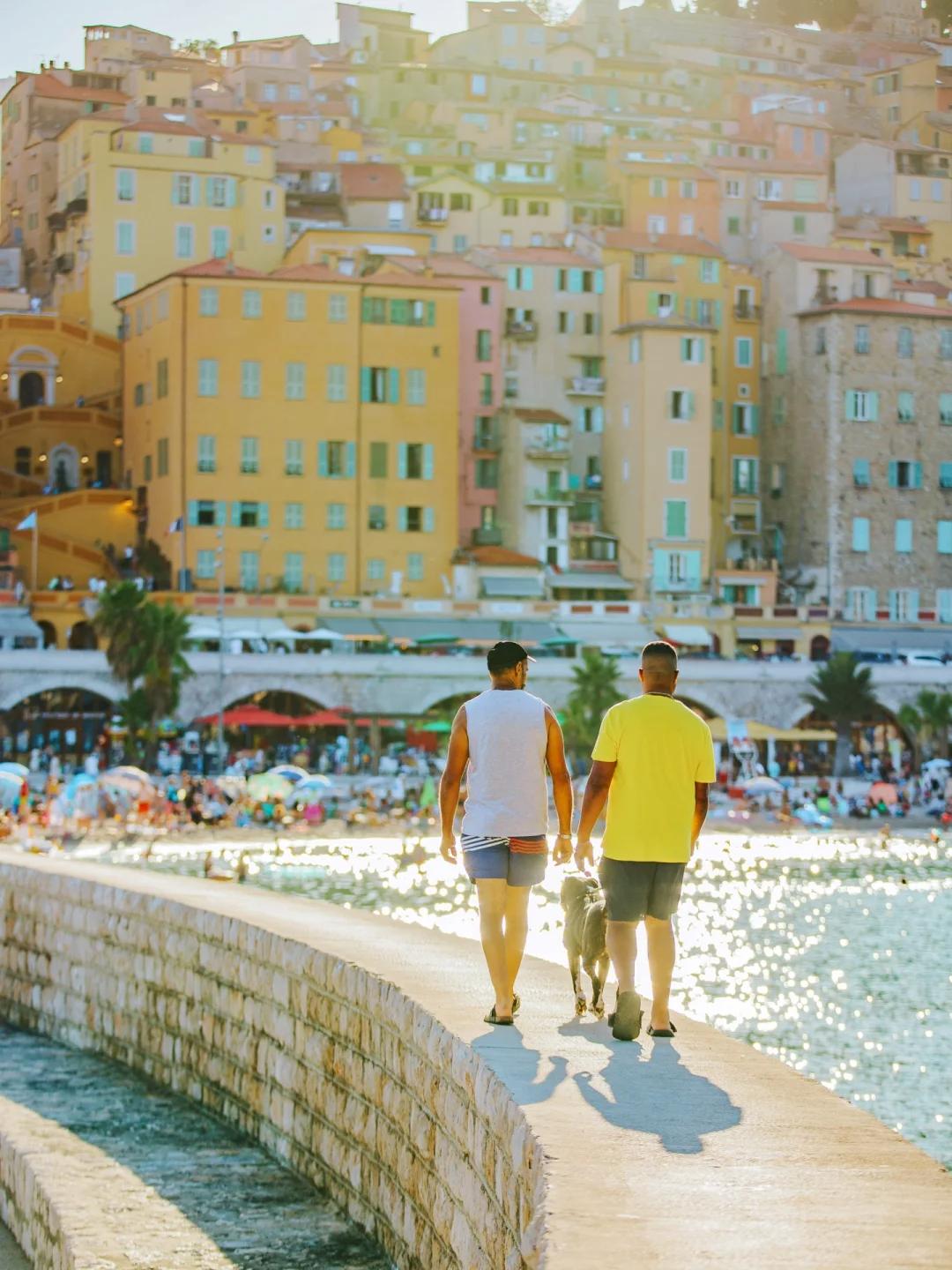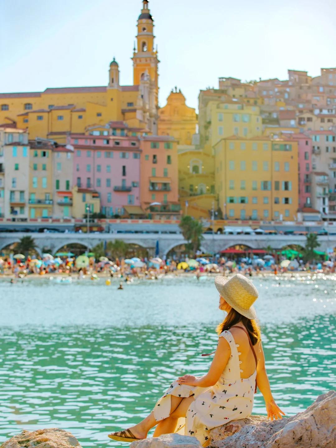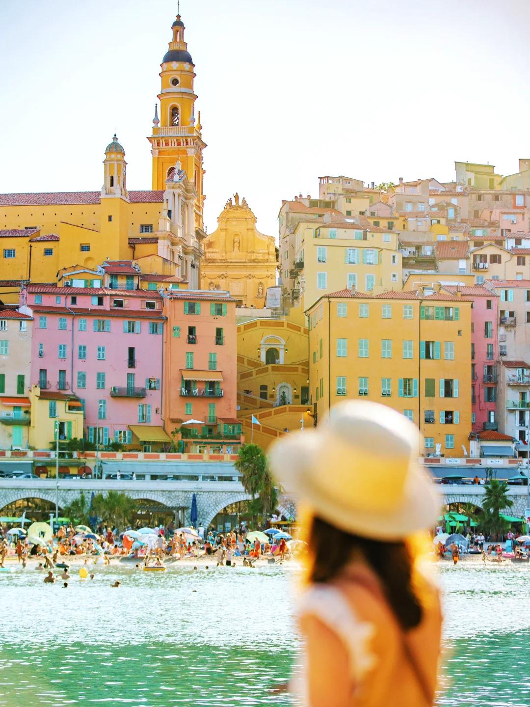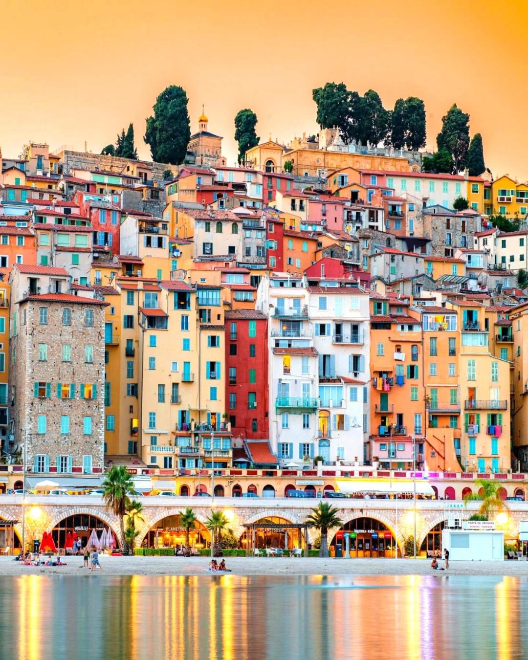 @黄太Joan芒通第一眼看上去很像是意大利的五渔村,五五彩缤纷的沿海民居高低错落,唯一的区别就是五渔村挨着悬崖,而芒通的海岸嵌着沙滩。