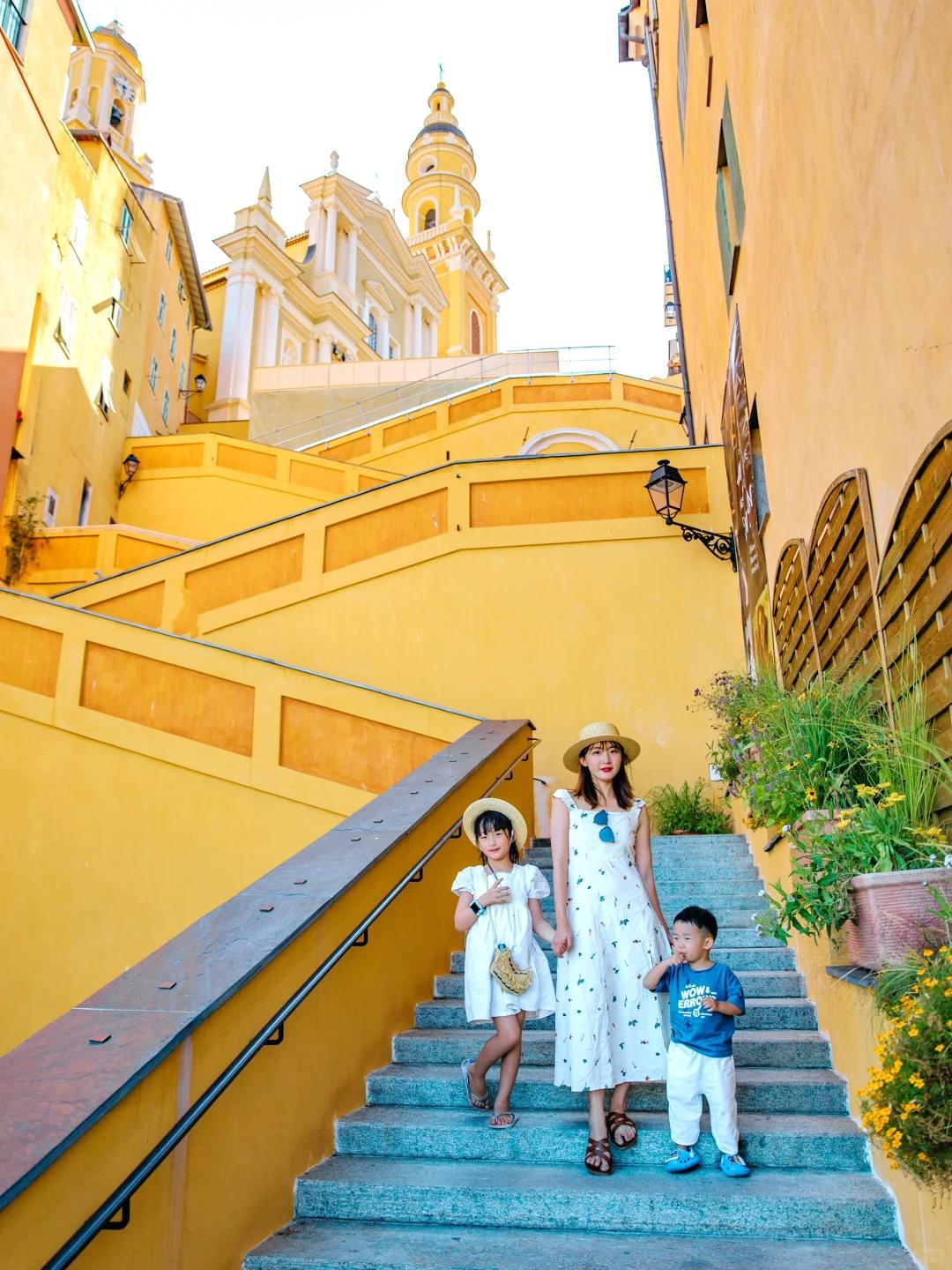 @黄太Joan这里还有一个网红台阶,经典的黄色招牌阶梯,一路往上爬可以看见柠檬黄的教堂!