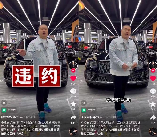 昨日晚间,抖音博主@天津亿华汽车发布视频称:“拍下迈巴赫的人没按照24小时进行交割,已经违约。我愿意拿出990万,随时抵达360总部进行交割。”不只是该博主,多位参与竞拍的二手车商昨晚都在直播时透露,周鸿祎没有收到车款。一时间,买家褚会长成为众矢之的,同行纷纷指责其缺乏契约精神。