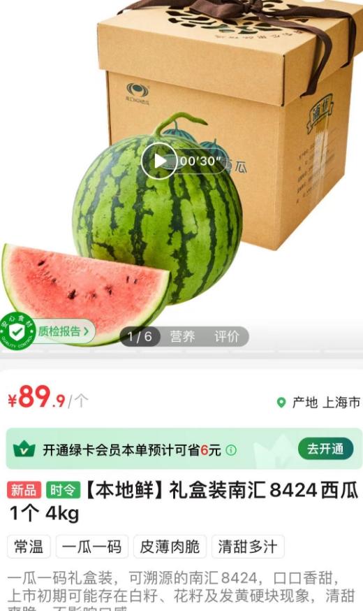 值得一提的是,记者从叮咚买菜获悉,今年上架售卖的“8424”,均由基地直采,每一只西瓜都贴有专属防伪码,一瓜一码,消费者扫描后不仅能追溯西瓜的重量、产地以及生产管理等信息,还会新增显示西瓜的包装上市日期,从而更直观地了解瓜的新鲜度。