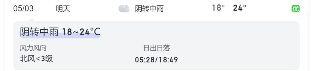 ◆ 5月1日,一场充满活力与挑战的欢乐、健康跑比赛在鲇鱼山镇昌飞嘉园盛大举行。此次赛事吸引了全市众多跑者齐聚一堂,共同展现了坚韧不拔的体育精神。详情点击→昌江区开展“相约五一 多彩鱼山”欢乐跑比赛◆ 为切实做好“五一”假期道路交通安全保障工作,严防道路交通事故和长时间、长距离交通拥堵,确保辖区道路交通安全形势持续稳定。5月1日,景德镇市公安局交警支队全警动员坚守在疏堵保畅第一线,迎来名副其实的“劳动节”。详情点击→“五一”假期首日,景德镇交警全力保畅通天气预报◆ 明日景德镇阴转中雨,温度为18~24℃,大家出门记得带上雨具。