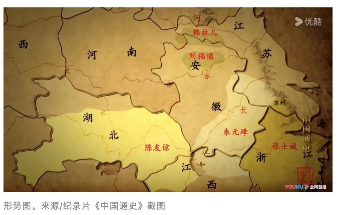 朱元璋有了自己的淮西二十四将后,加上收编的势力,一路向南发展,一不小心就成了大股东。1354年8月,朱元璋对郭子兴已经具有三比一的优势,也就根本上脱离了“朕居扰攘之间,遂入行伍,为人调用者三年”这种工作状态。
