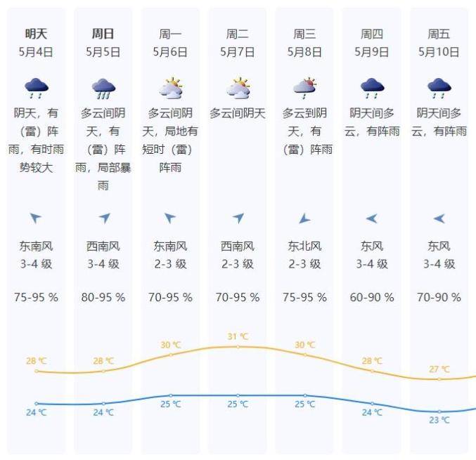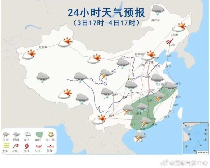 中央气象台预计,5月3日至5日,贵州中东部及江汉南部、江淮、江南、华南等地自西向东将有大到暴雨,局地大暴雨;累计雨量有40~80毫米,湖南东南部、江西中南部、广西东北部、广东中北部等地的部分地区100~180毫米,局地可达200~250毫米。