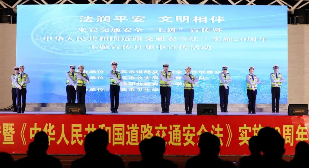 开场舞《交通安全你我他》。据悉,此次活动分为师生互动体验与集中宣传活动晚会两个阶段,通过丰富多彩的形式,让交通安全知识深入人心。在师生互动体验阶段,通过警用摩托车(铁骑)体验、酒驾测试体验、汽车盲区体验、交通标识学习体验等互动方式,让师生们学习交通安全知识,了解遵守交通规则的重要性。在集中宣传活动晚会阶段,歌舞、小品、朗诵等精彩节目将交通安全知识融入其中,让观众在轻松愉快的氛围中学习到交通安全知识。现场还设置了交通安全知识问答环节,观众们积极参与,争相抢答,现场气氛热烈。