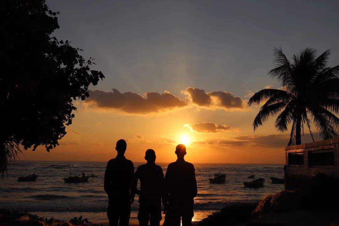 椰林静谧,在夜色中描摹出弧线。繁星密布,缀成璀璨的银河。