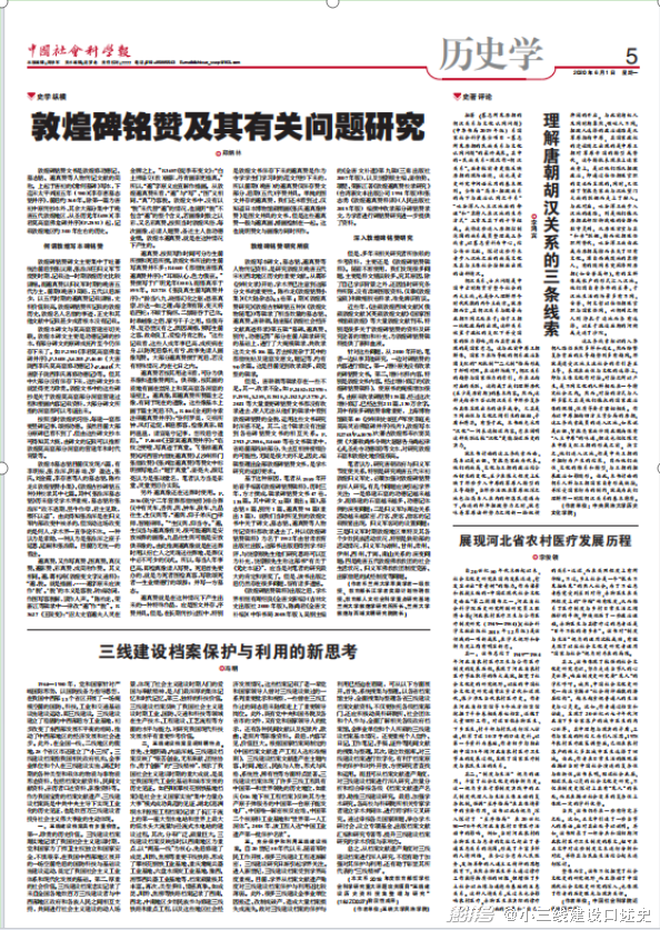 图5:冯明:《三线建设档案保护与利用的新思考》,《中国社会科学报》,2020年6月1日,第5版(历史学版),独撰。