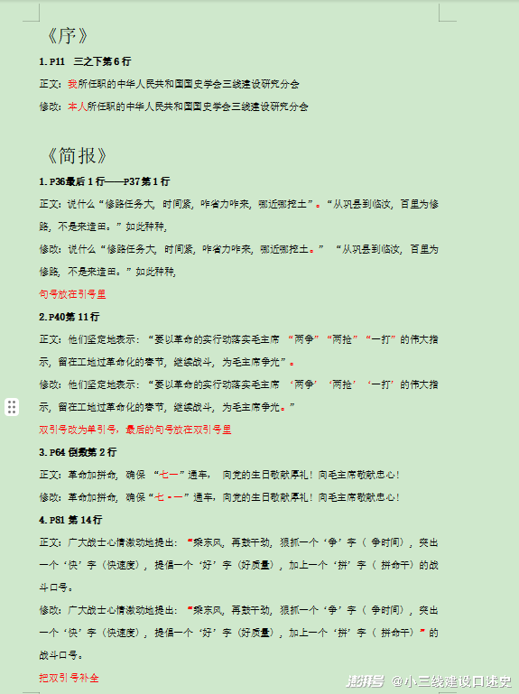《焦枝铁路宜都县民兵师报纸卷》编辑过程却一波三折。起初我们为了向读者呈现档案的原貌,拟影印出版,做了一些基础性工作。2020年12月底,中国社会科学出版社编辑建议我们把原始档案录入后再出版。2021年元月初,在我和罗萍教授指导下,我院中国近现代史基本问题方向硕士研究生田蕊菡、王新亚、冯吉、董璇同学承担了原始档案录入工作,严格按照原文录入,至2月初完成。其后,根据编辑意见进行了修改,是年4月完成。最后,我又根据编辑意见对照原文多次进行校对和修改(图11)。2023年3月下旬,本辑书稿达到了出版标准,终于可以正式出版了(图12)。