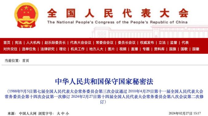 【保密知识】最新《保守国家秘密法》2024年5月1日起施行!