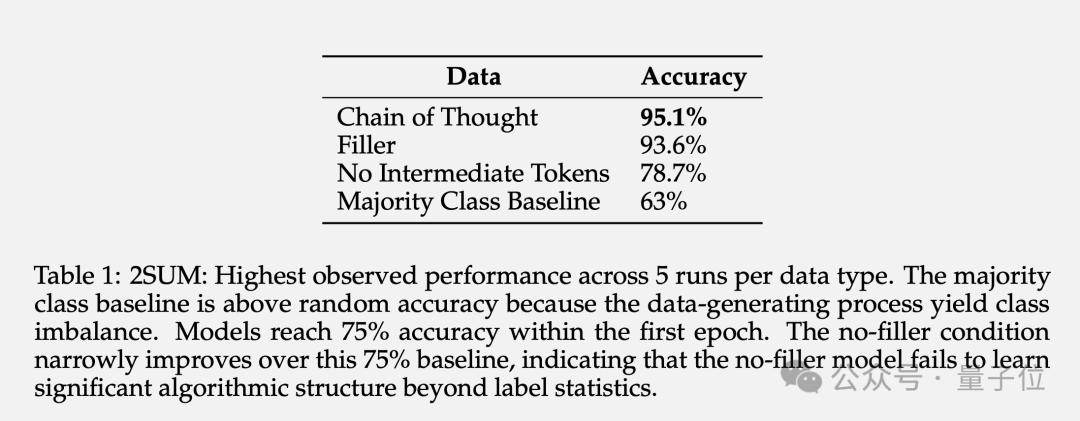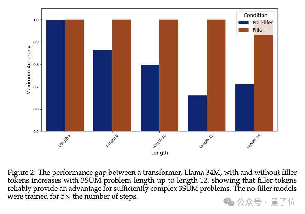 结果表明,使用填充token可以将准确率从 78.7%提高到93.6%。