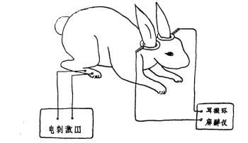 寿:科学研究必须有量化的办法。我们对耳根环麻醉实验做了比较严格的设计。首先,我们在兔子的一只腿上安置两个皮肤电极并用方波电脉冲刺激,观察兔子的屈腿反应。如果连续三次都能引发兔子防御性的屈腿反应,那么此时最小方波电压峰峰值就为痛阈。比如原来给兔子4.47伏特的电压刺激它就会有屈腿反应,现在耳根环电刺激时要给到8.43伏特的电压刺激才有反应,说明耐痛的阈值提高了89%,我们就用这样的客观指标得出了量化的数据。