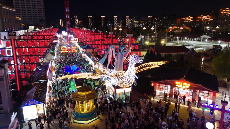 “五一”期间,梅河口东北不夜城宽敞的街区人流如织,热闹非凡。来自四面八方的游客齐聚东北不夜城打卡拍照。孙池 摄