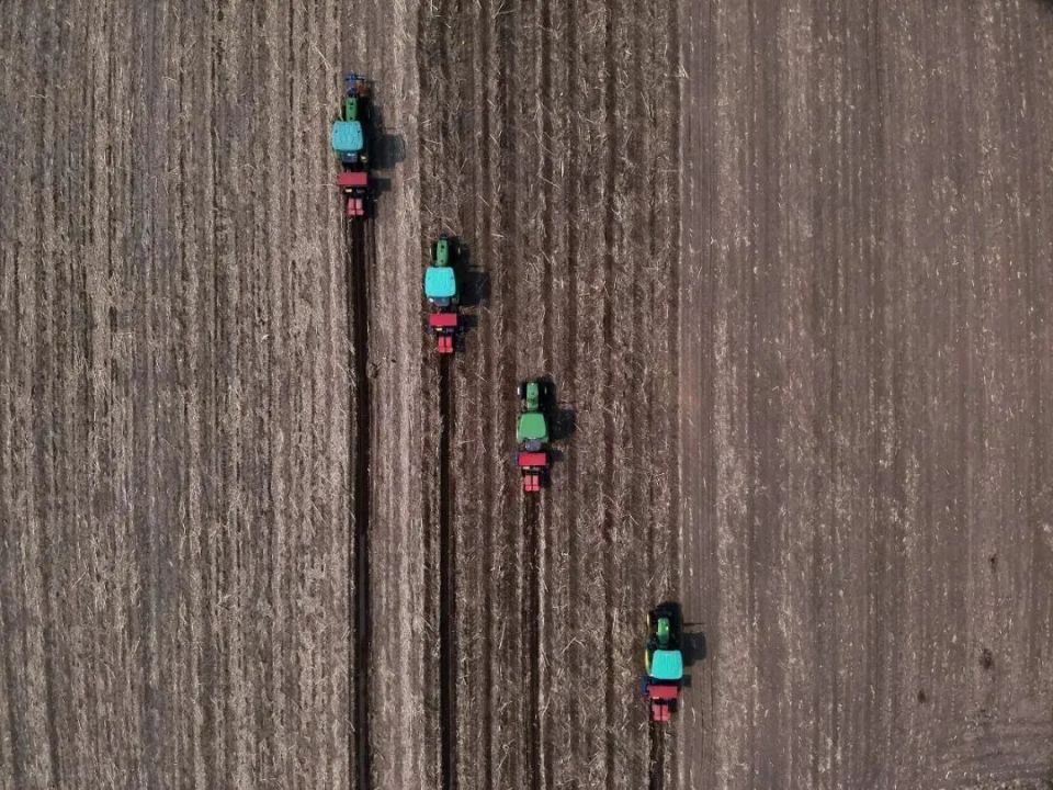 梨树县蔡家镇敬友村诚农农机农民专业合作社的社员们驾驶大型智慧化播种机播种玉米。随着天气逐渐转暖,梨树县大田播种逐渐拉开帷幕。据了解,2024年梨树县春播农作物种植计划393.9万亩,其中,玉米339万亩、大豆17万亩、水稻10.04万亩、薯类2.8万亩、其他农作物播种25.06万亩。郭敢峰 本报记者钱文波 摄