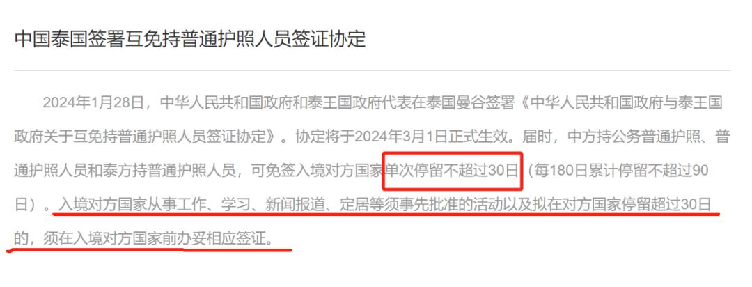 以泰国为例,这个美丽的东南亚国家对中国游客实行免签政策,但仍有诸多注意事项。比如,在停留时间方面,单次停留不超过30日,每180天累计停留不超过90天;在入境事由方面,入境对方国家从事工作、学习、新闻报道、定居等须事先批准的活动,仍要在入境前向对方签证机关或主管部门提出申请。温馨提示
