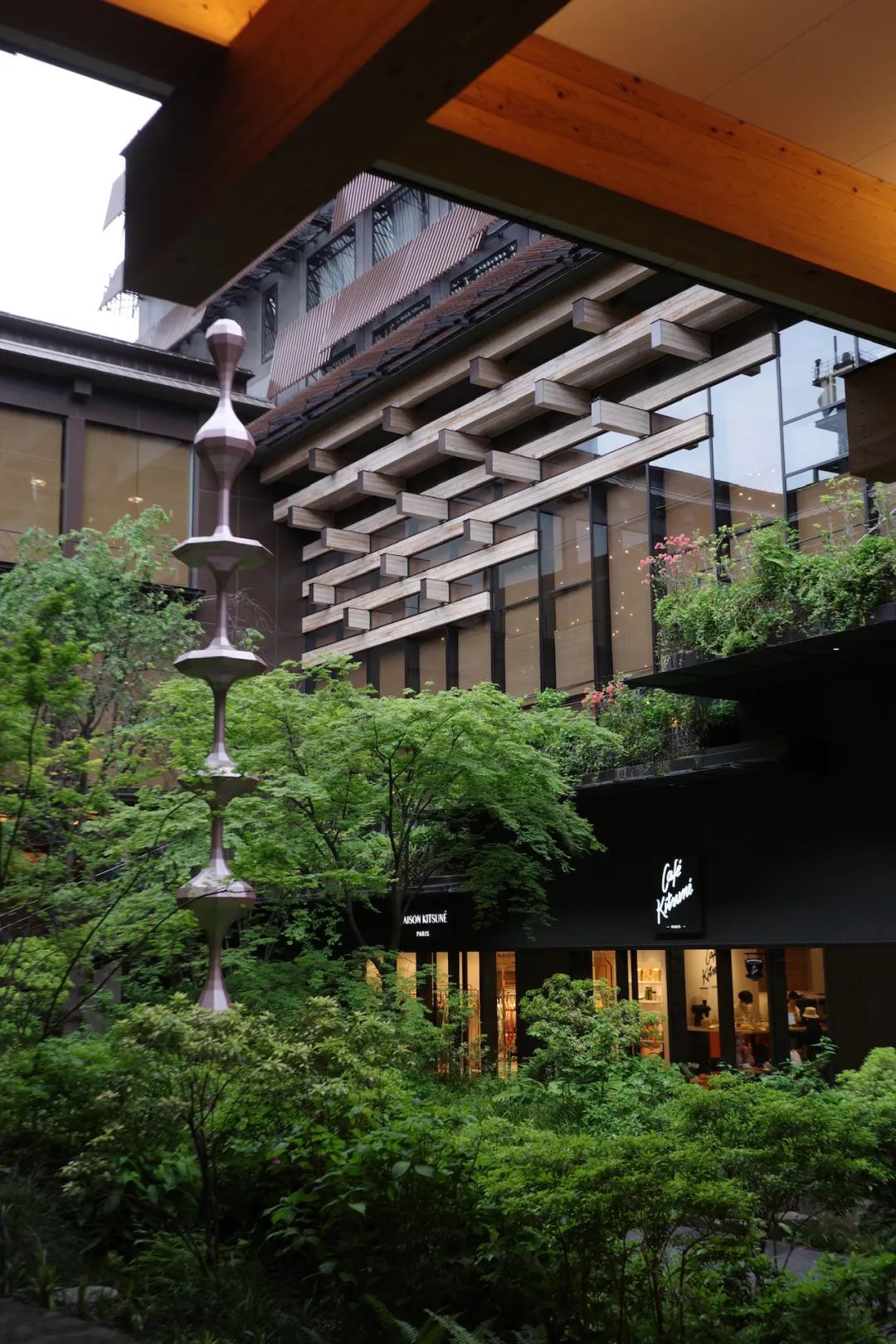 首先,它的建筑就很好看。一查,这里原来是旧京都中央电话局,由日本现代建筑的先驱之一吉田哲郎设计。2020年6月重新开发,由隈研吾设计监修,将其改造并扩建,怪不得一眼熟悉。