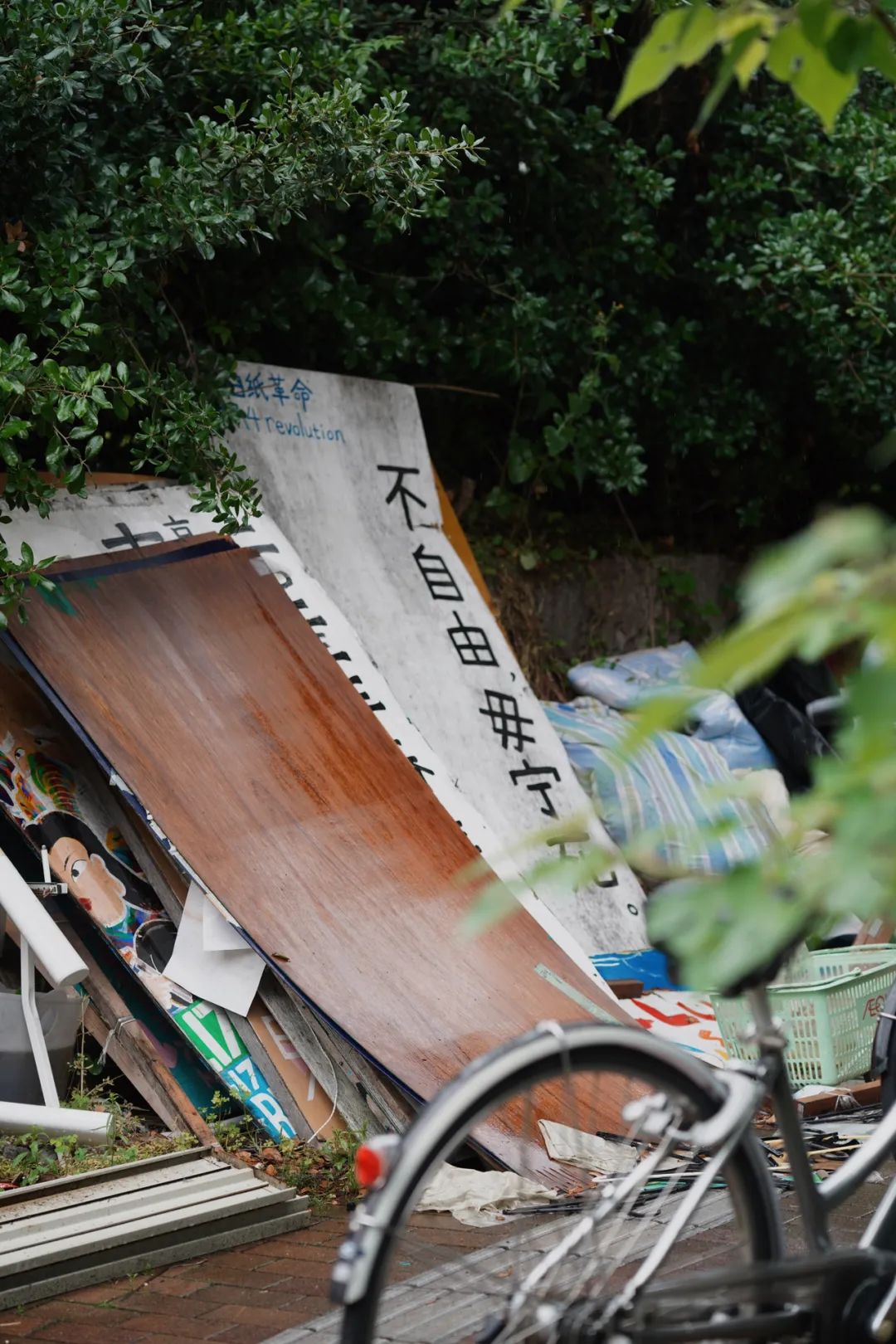 这里,有很多抗议海报,还有一块牌子,写着大大的「胜诉」。