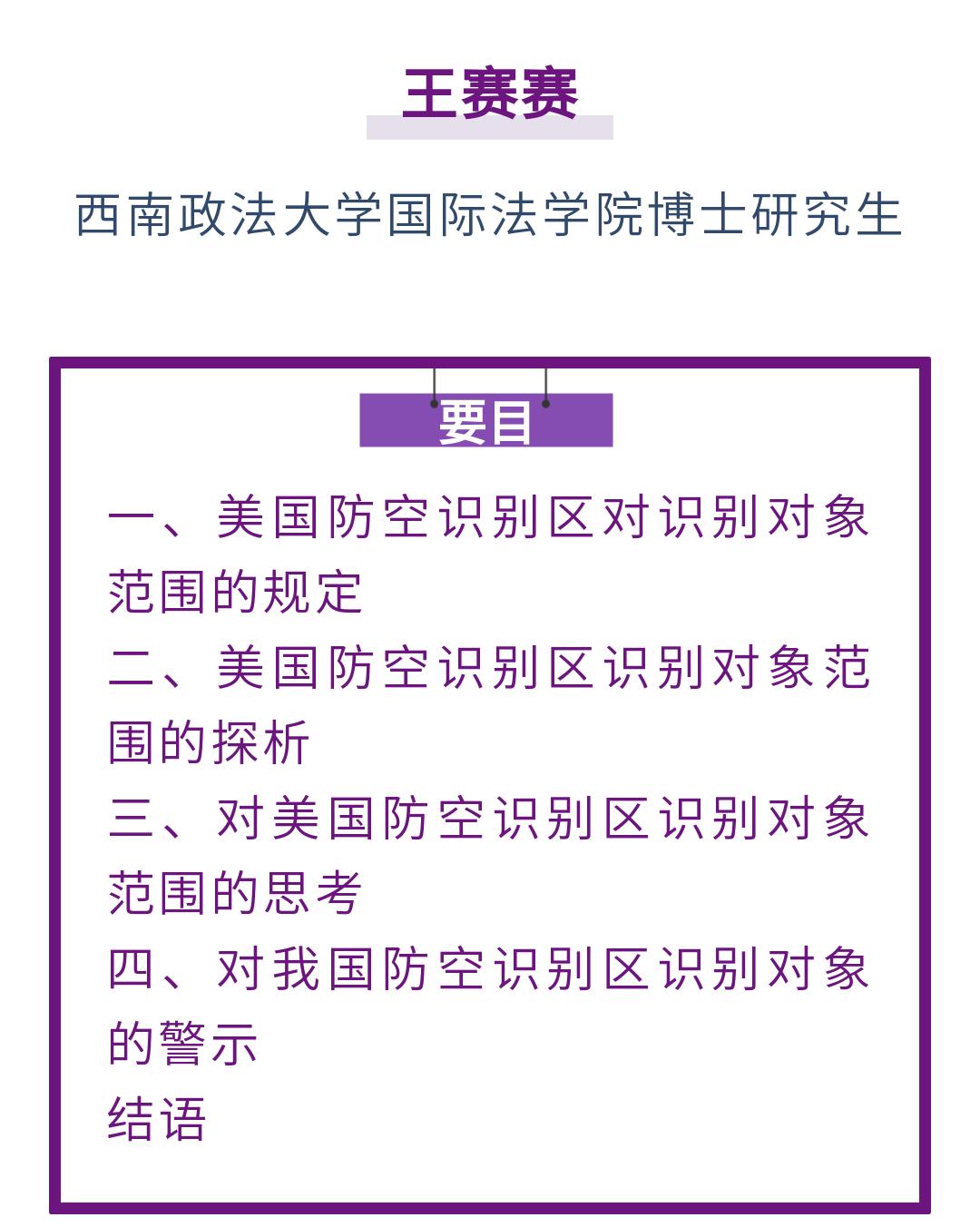 原标题:《王赛赛|论美国防空识别区识别对象的范围及对中国的警示》