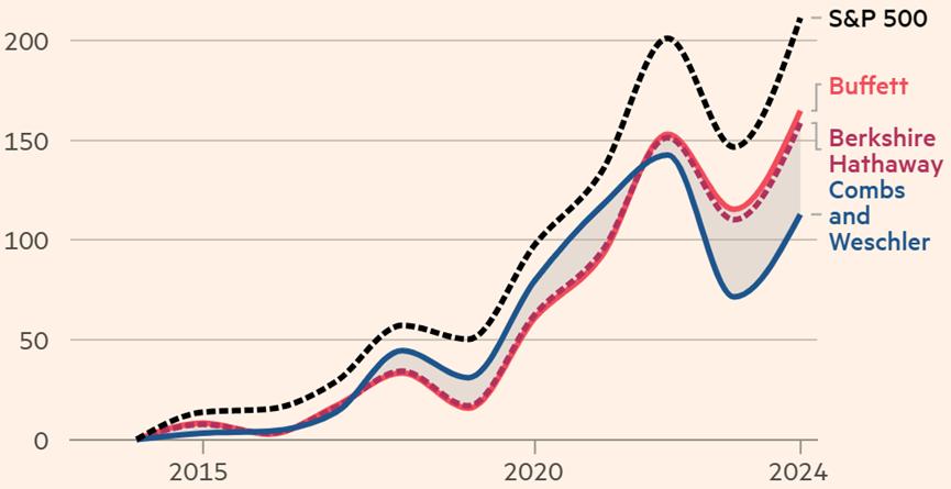 康姆斯和韦施勒的表现落后于巴菲特和整个美国市场
