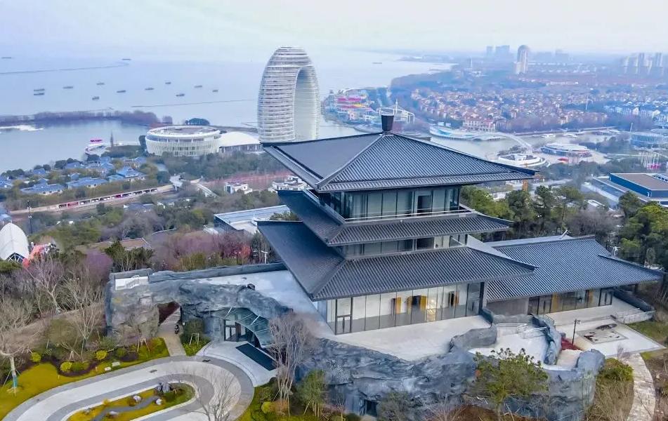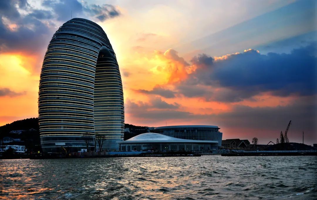 湖州是环太湖唯一因湖得名的城市,而太湖南岸的喜来登温泉度假酒店是湖州的标志性建筑,其外形酷似一轮圆月升起于湖面之上。每当夜幕降临,天上的月亮皎洁妩媚,湖面的月亮随波荡漾,形似满月的“月亮酒店”灯光璀璨,状如新月的月亮桥上情侣依偎,华灯初上的月亮广场人声鼎沸,这里成为观赏湖州夜景的最佳打卡地。展现现代建筑之美的“月亮酒店”,与体现历史文化之韵的“飞英塔”,巧妙组合成湖州城市 LOGO,构成了湖州这座现代都市的精神图腾。第二景