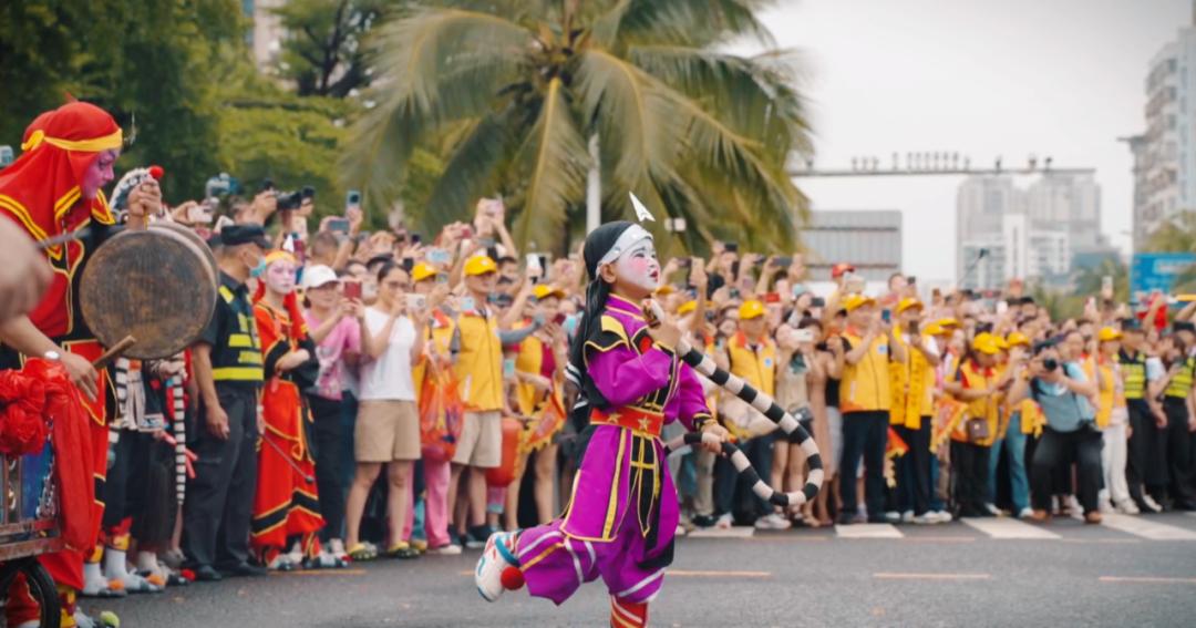 兴潮天后宫英歌舞巡游活动事实上,整个“五一”假期,这样的热闹在海口处处可见:各类非遗展演、国潮巡游高潮迭起,吸引大批市民游客观演打卡。