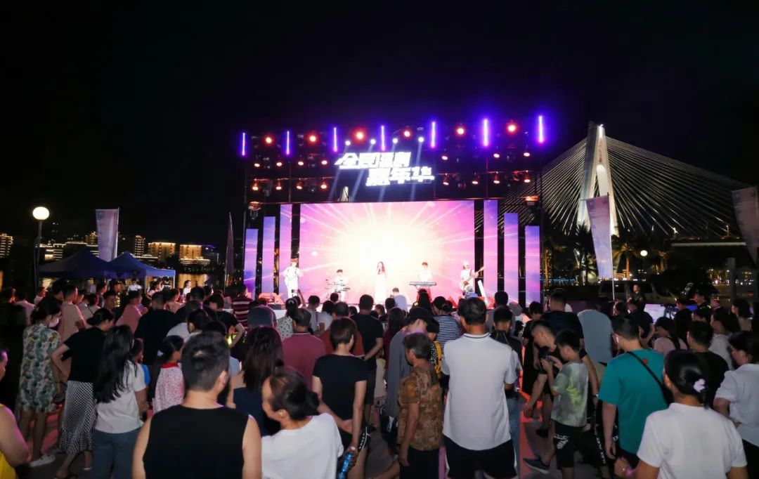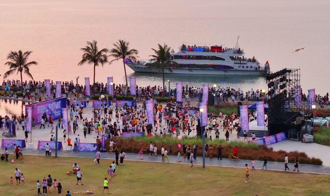 华彩海口湾广场热浪音乐会活动世纪海角椰林广场上演泡泡梦幻T台秀,少儿走秀、摇摆舞会、乐队演出让观众尽享假日欢乐。各大免税店也纷纷通过线上线下形式,推出各类主题促销和互动打卡活动,持续释放免税消费活力。