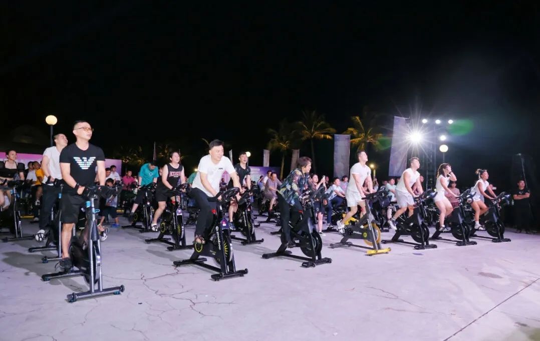 2024海口市全民健身嘉年华活动在各类器械中,整齐划一的动感单车最为引人注目。在动感的音乐中,聚光灯来回变换,参与者们在教练引导下爬坡、冲刺,活力四射。