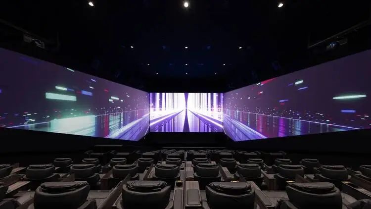 而影院第6厅则是难得一见的Screen X全景影厅,影像会投影到正面大银幕及左右墙面上,给观众带来不同寻常的沉浸式观影体验。除了正在上映的电影之外,这里也会定期举办经典影片重映以及音乐现场表演等。