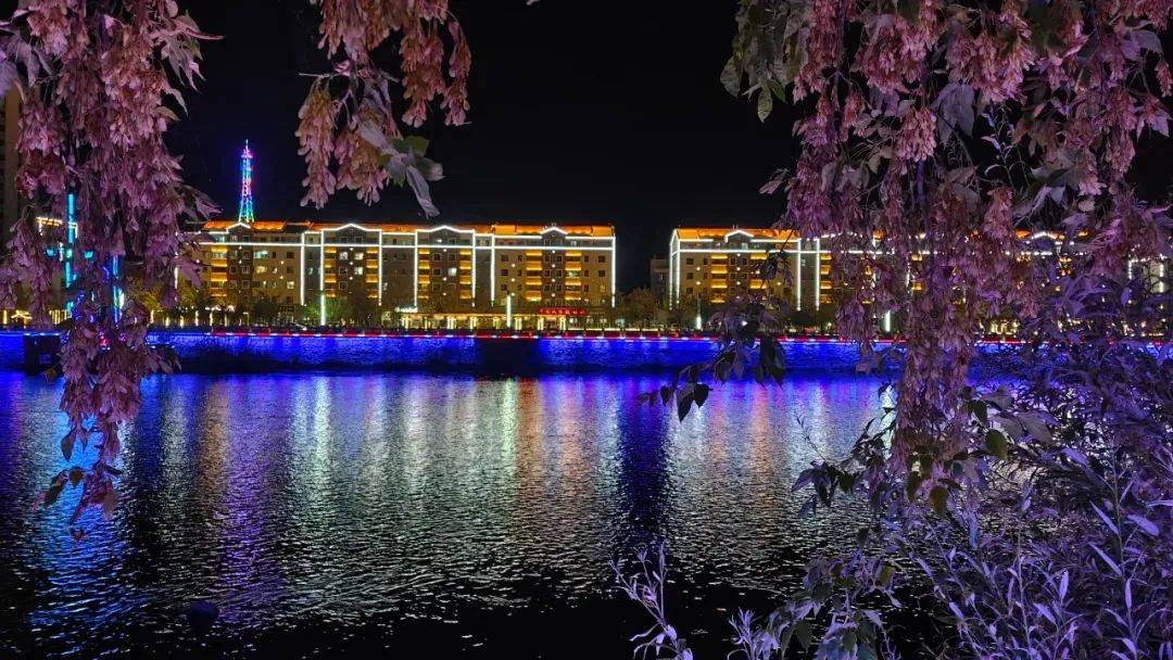 当夜幕降临,富蕴县城又展现出另一番风情。健身步道、休闲活动区等地灯光璀璨,流光溢彩。河边游步道绿树相掩,夜色晕染温柔,霓虹灯闪烁,水色与夜色融为一体,构成了一幅幅美丽的画卷。此时,漫步在县城的街头巷尾,感受着小城的宁静与繁华,让人不禁沉醉其中。