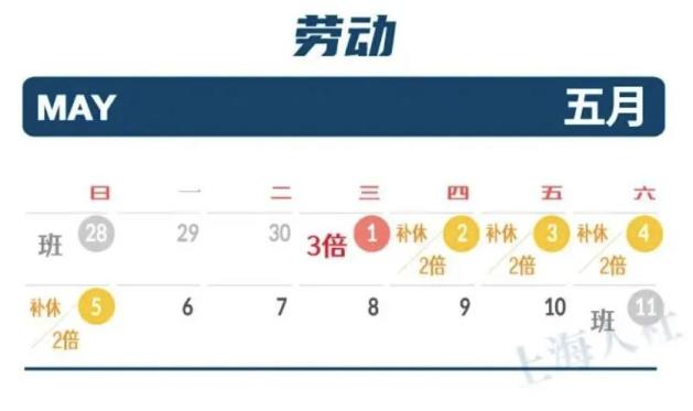 2、5月2日、5月3日、5月4日、5月5日是休息日,用人单位安排劳动者工作又不能安排补休的,应支付不低于本人日工资的200%的工资报酬。