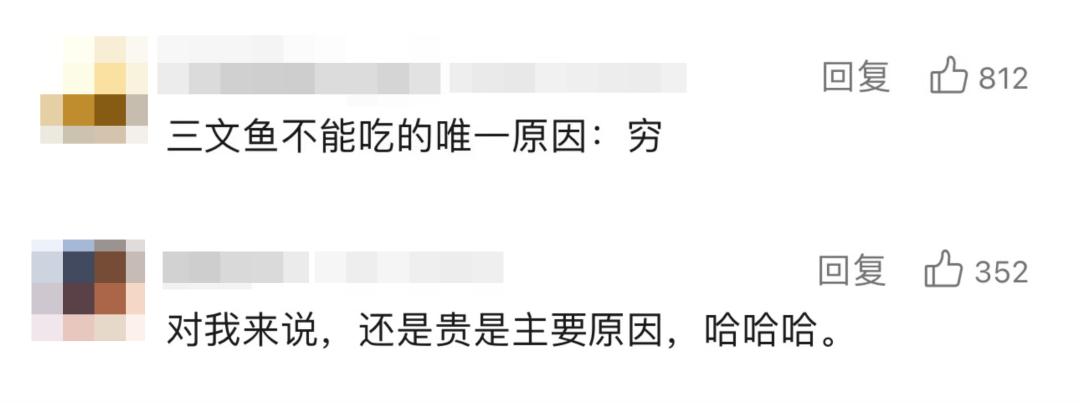 当时评论区就有不少小伙伴反馈:不是不知道三文鱼有多好,而是钱包有点受不了。