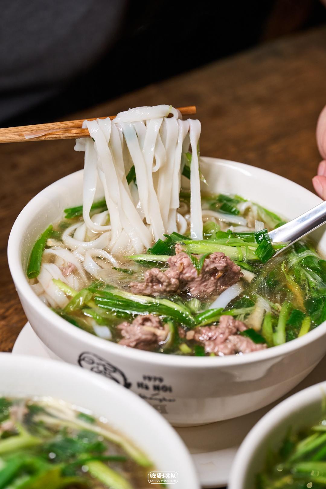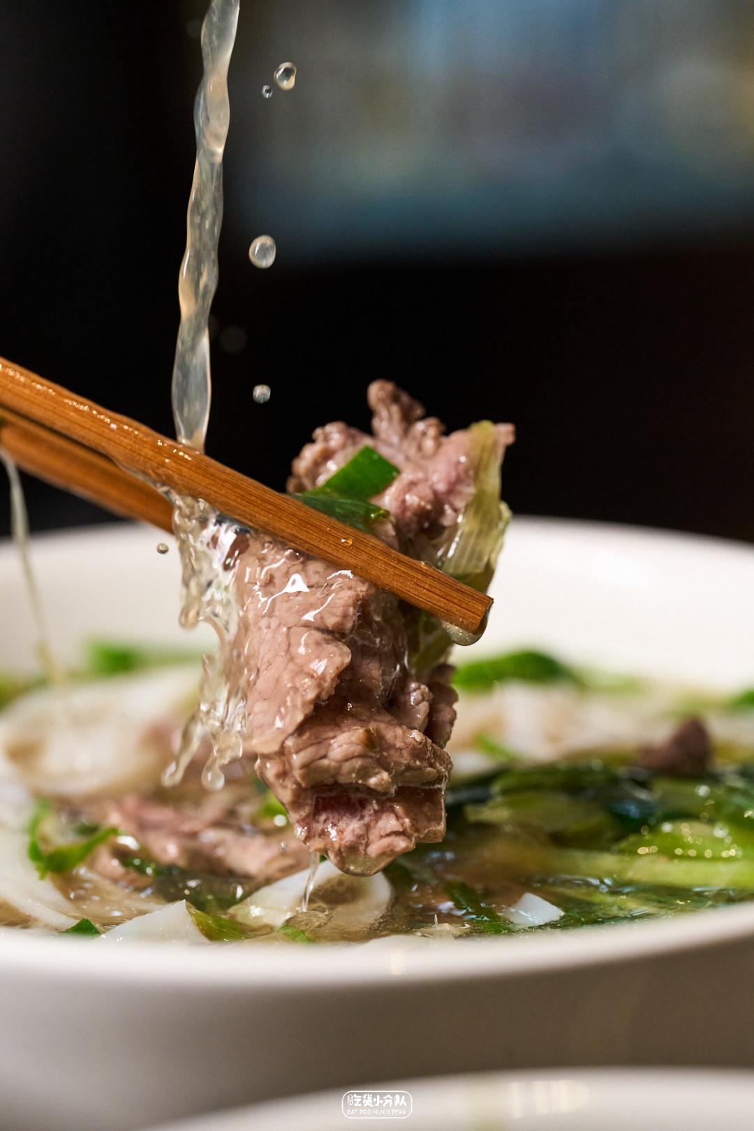在上海,越南粉大约都在50-60元之间,其中的成本,其中一大部分在于汤头。懂行的人都知道,越南汤粉好吃全靠这一碗汤。他们家的肉汤是用牛骨、猪骨、蔬果和香料文火慢熬18个小时制成,牛骨和猪骨的结合赋予了汤头浓郁的肉香,蔬果带来了自然界的鲜甜,而香料的添加则又增加了一份微妙而独特的芳香。爱喝汤星人应该不会想错过这一口。02:牛肉