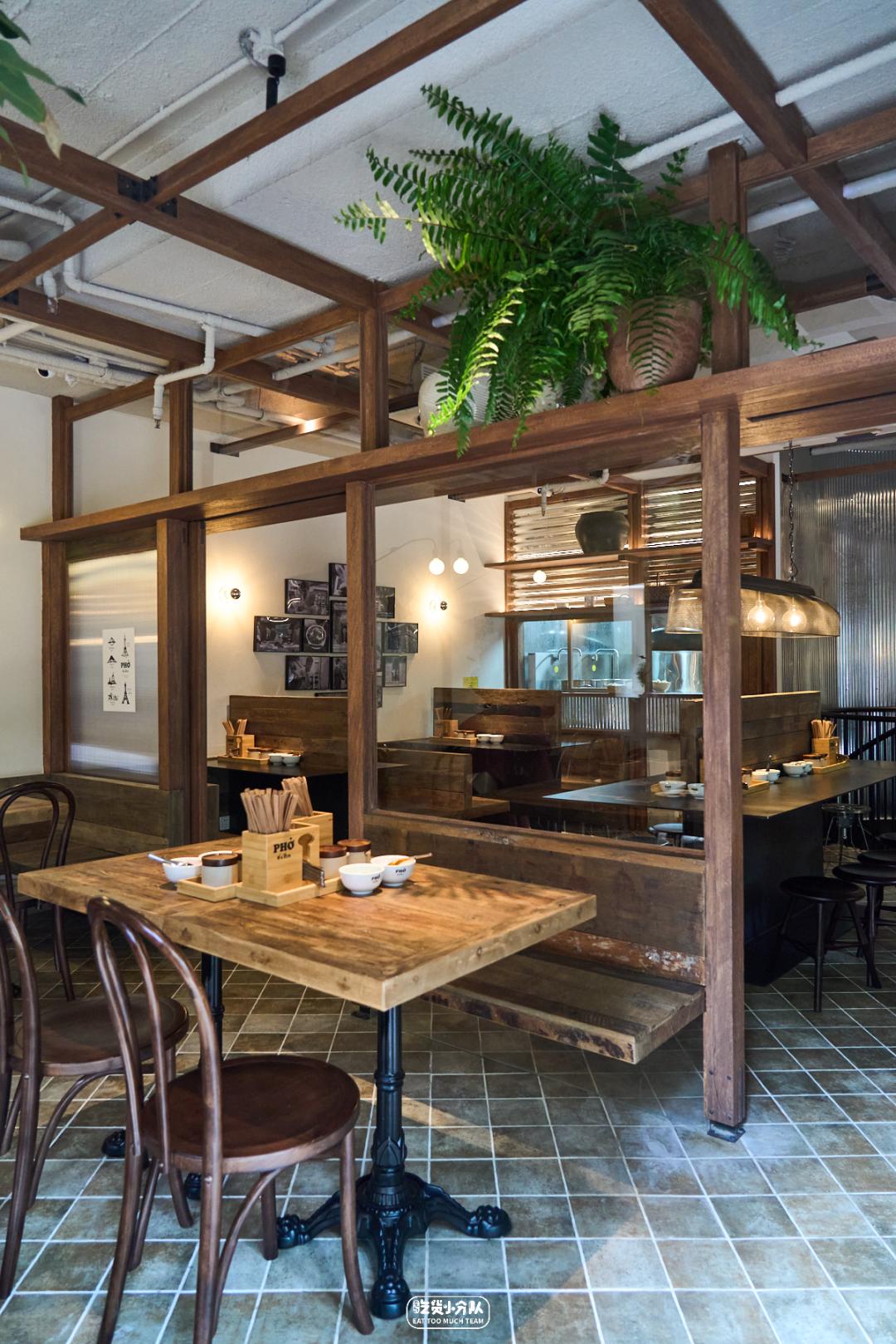 餐厅装修上也花足了心思,整体采用实木作为主要装修材料,从入店的木门到店里木质架构、纯木质桌椅,配合乳白色肌理墙面烘托出温馨的暖色调氛围,这是独一份的越南质感。顺着旋转楼梯到负一层也是一处很好的用餐空间。炎热夏天即将来临,阴凉的空间与清爽的牛肉粉是绝配。