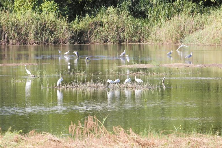 踏入福田红树林自然保护区,红树林郁郁葱葱,鸟虫鸣声声悦耳。管理人员告知,大多数栖息候鸟已北归,只有少量反嘴鹬、红脚鹬以及二三十只黑脸琵鹭仍流连忘返。过境鸟迁徙也至尾声,仅见少量红颈滨鹬、弯嘴滨鹬,偶见一只国家一级保护鸟类黄嘴白鹭。