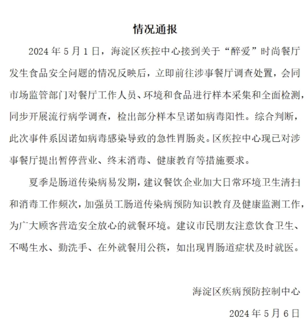 【上百名清华校友校外聚餐食物中毒?最新通报】近日,社交平台上一份《致全体校友及在校师生建议书》引发关注。5月6日晚,北京海淀疾控发布情况通报,详情如下: