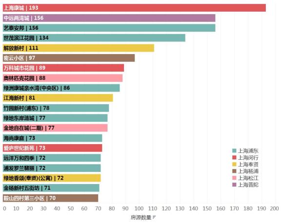 对各个小区二手房在售房源数量多少进行排序,取前20的小区进行展示。