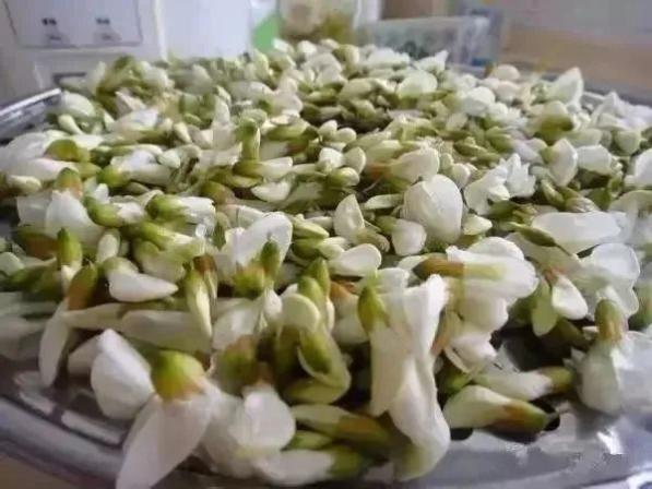 1.新鲜采摘的槐花,去蒂。清水淘洗干净,荫凉处晾干,备用;