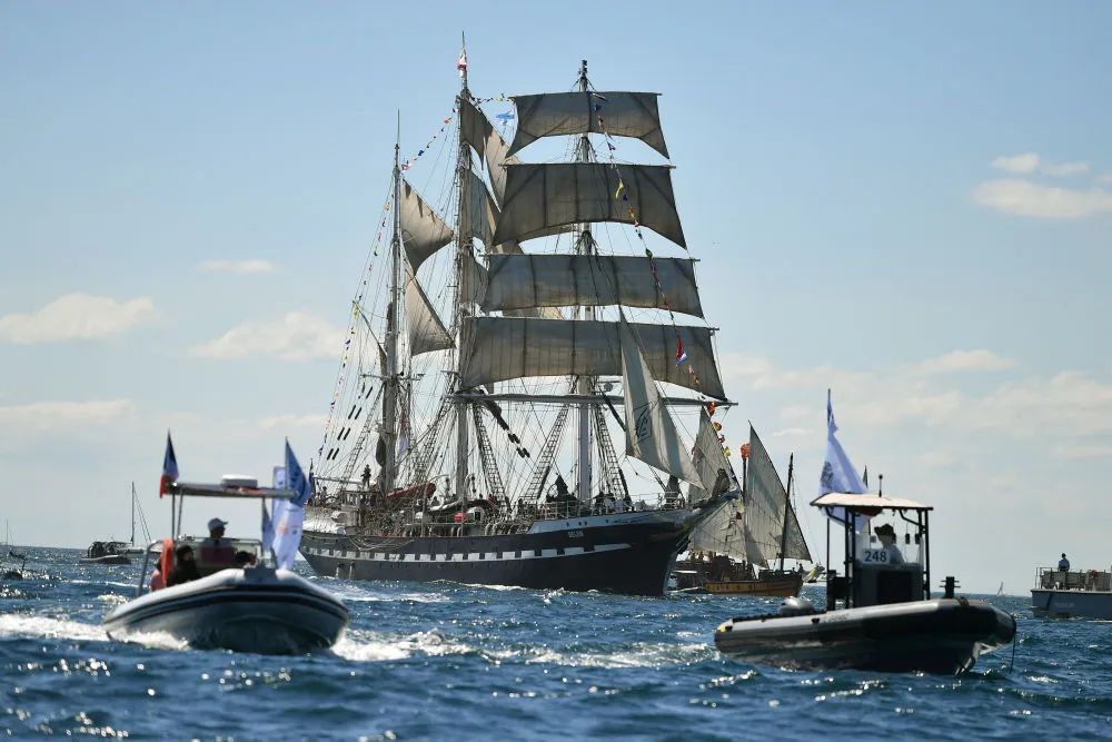 当地时间5月8日,搭载巴黎奥运会火种的“贝勒姆”号帆船抵达马赛。新华社发(朱利安·马蒂亚摄)巴黎奥运会火种于当地时间8日傍晚抵达法国南部港口城市马赛。从9日起,巴黎奥运会火炬将开启在法国本土的传递。