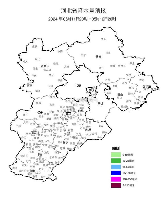明天白天,全省阴,大部分地区有雷阵雨或阵雨,雷雨时局地伴有短时大风、短时强降水、冰雹等强对流天气,其中承德、唐山、秦皇岛、保定、石家庄、沧州局地有中到大雨。最高气温,张家口北部、承德北部18~25℃,其他地区26~33℃。
